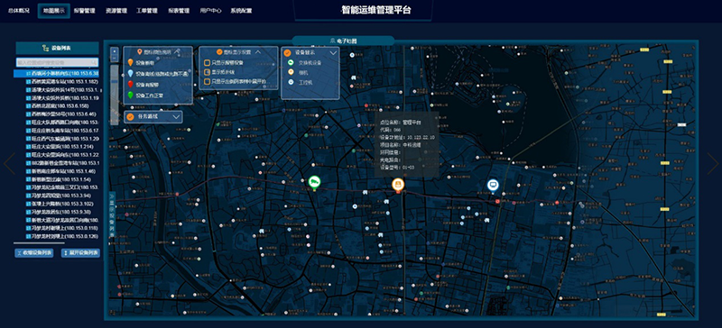 3.2 地圖展示模塊:基于GIS地圖加載顯示設備,實時顯示設備圖標,顏色區分故障狀態